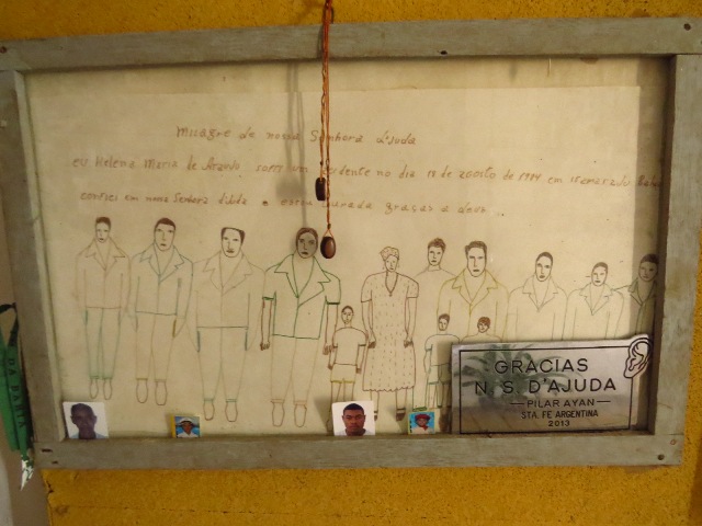 Quadro Ex-votivo com desenho, fotos, texto e tarja identificando: “GRACIAS/N. S. D’AJUDA/-PILAR AYAN-/STA. FE ARGENTINA/2013”