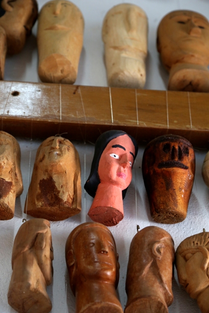 Cabeças humanas pequenas em madeira