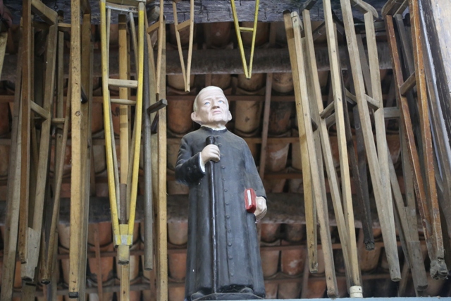 Estátua do Pe. Cícero cercada por muletas de madeira