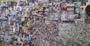 Parede com diversas fotografias na Sala de Promessas da Igreja Matriz de Nossa Senhora dos Milagres.
